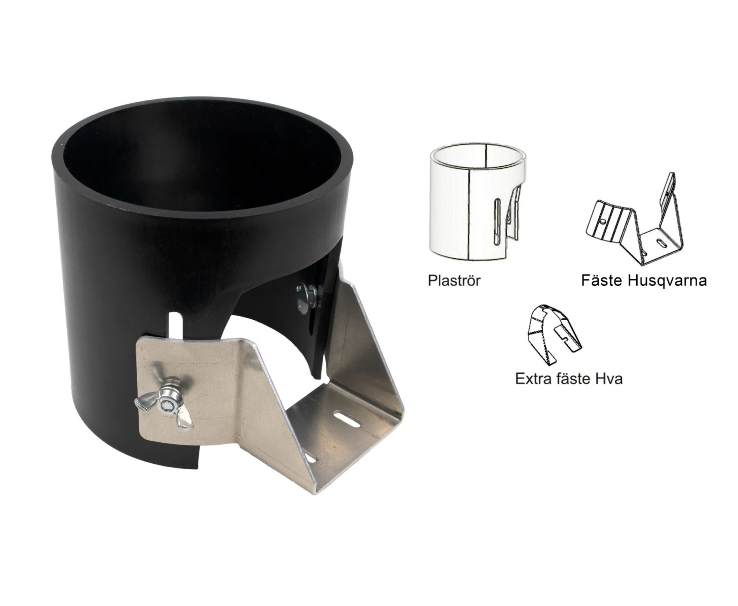 Kiinnike Husqvarnalle sopii seuraaviin malleihin: 545 F, 545 FX, 545 FXT, 545 FR, 545 RXT, 555 FX, 555 FXT Se sopii myös useimpiin vanhempiin sahoihin, joissa on kiinteä raivaussuojakiinnike – ei 240-sarjaan.