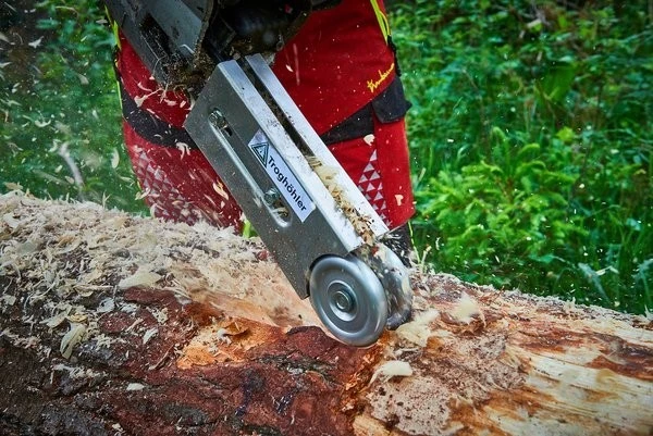 Suosittelemme ketjupyörän vaihtamista ennen kourujyrsimen asennusta käytettyyn sahaan.