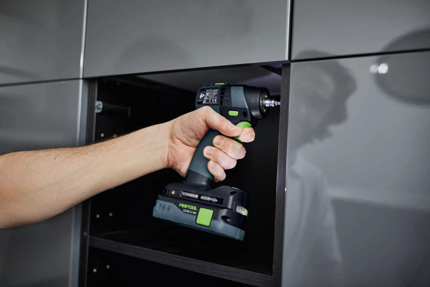 TXS 18 tarjoaa optimaalisen varustuksen: ruuvikärkien säilytyspaikka, LED-valon ohjaus, vyöpidike, tehokas 18 V:n akku ja kansilokerostollinen Systainer³ (riippuen versiosta) ovat kaikkien toiveiden täyttymys ja helpottavat päivittäistä työtä.