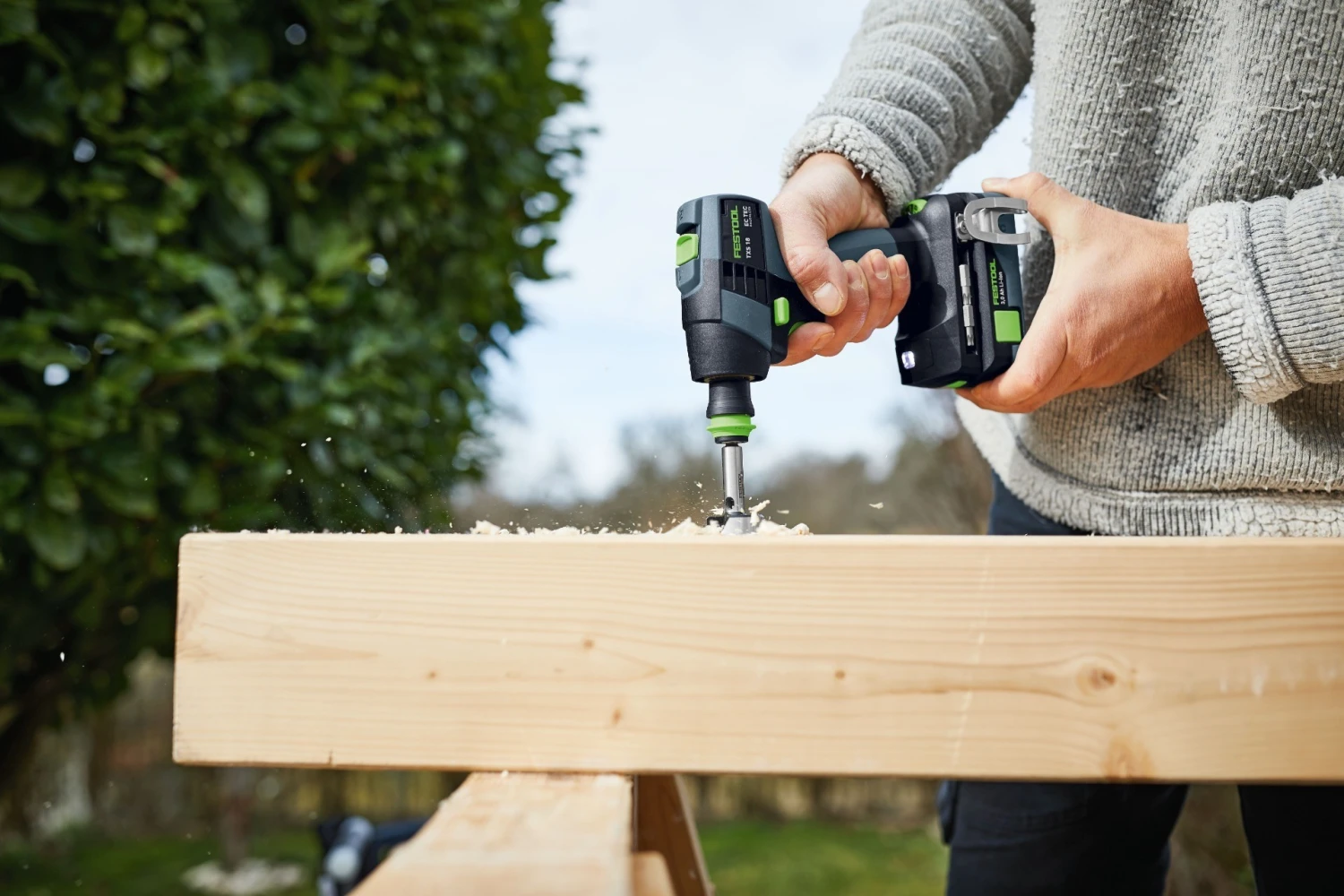 Monipuolinen ruuvaaminen ja poraaminen: oikea vaihtopää käyttökohteeseesi. Festoolin kaikkien nykyisten 18 V:n ruuvinvääntimien vaihtopäät sopivat tarkasti paikoilleen – käyttötarvikkeiden vaihto sujuu helposti ja nopeasti CENTROTEC-järjestelmän ja FastFix-liitännän ansiosta.