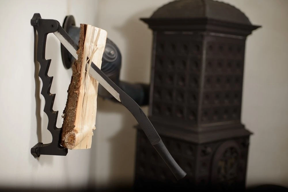 Halkaisulinkku kiinnitetään kiinteään seinään ruuveilla. Aseta puu asianmukaisesti ”hampaisiin” (kts. kuva), aseta terä yläasentoon puuhun nähden, pidä puun alaosasta kiinni ja halkaise puu kevyesti painamalla. Kuitumaiset puut kuten kuusi, mänty, koivu ja saarnipuu soveltuu parhaiten käyttöön.