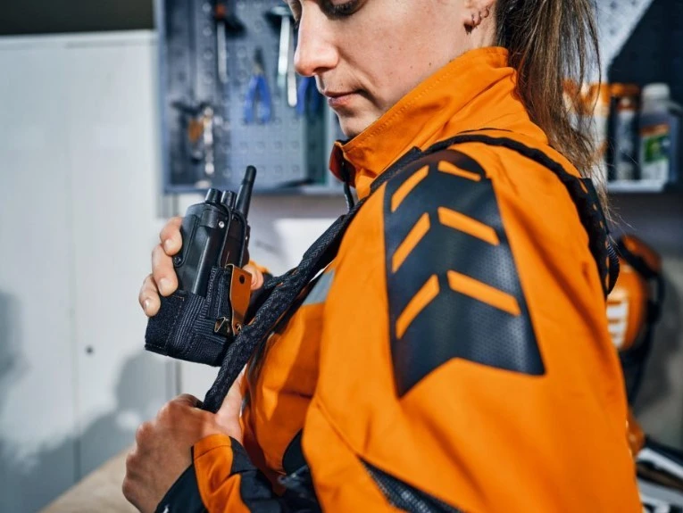 Paras tapa on kiinnittää radiolaukku Stihl Advance X-Flex olkaremmeihin, vaihtoehtoisesti radiolaukku voidaan kiinnittää myös Advance X-Flex vyöhön tai Advance X-Flex lantiovyöhön (ostettavissa erikseen).